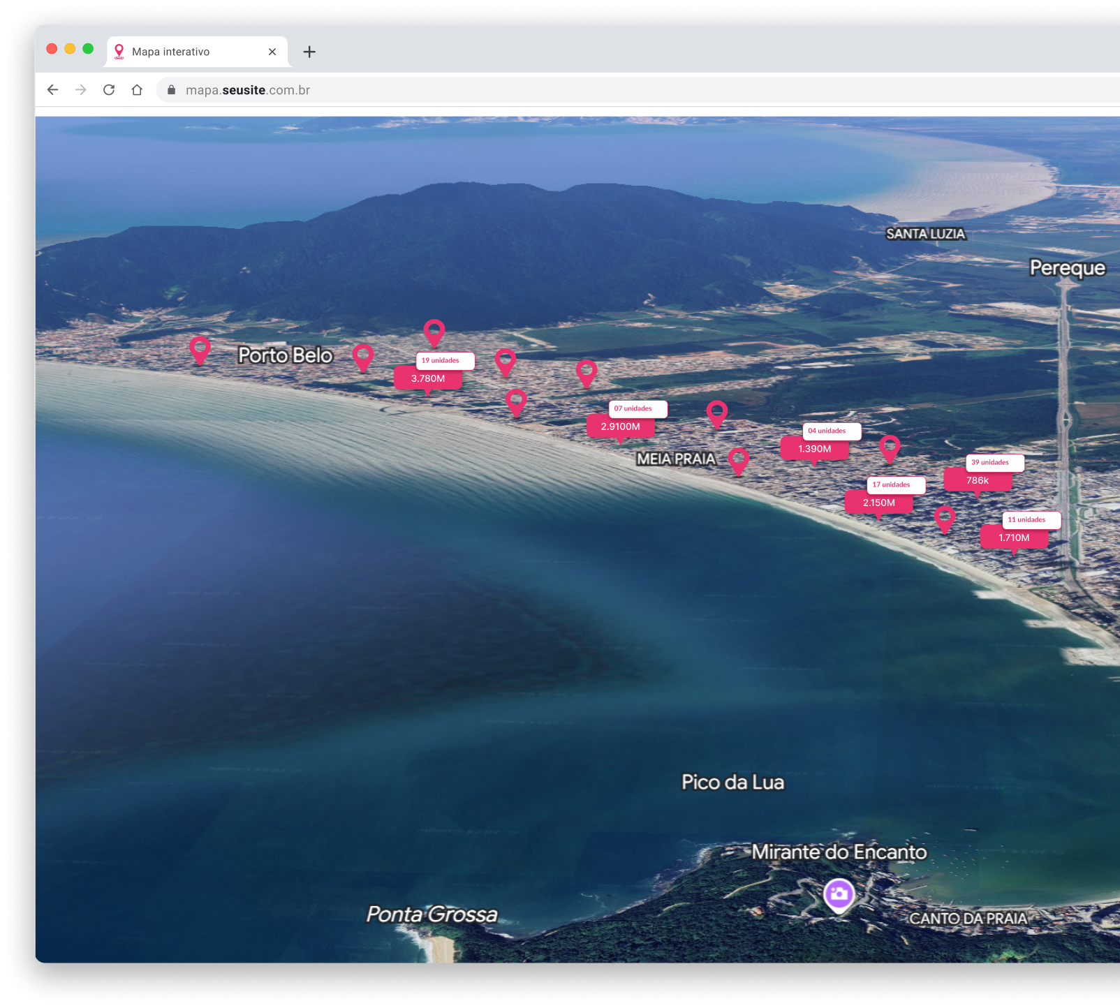 O mapa interativo transforma a história da empresa em uma experiência visual envolvente. Ele mostra, com clareza, a capilaridade conquistada ao longo dos anos, destacando cada empreendimento entregue, cada localização privilegiada e cada conquista que fortalece a marca.